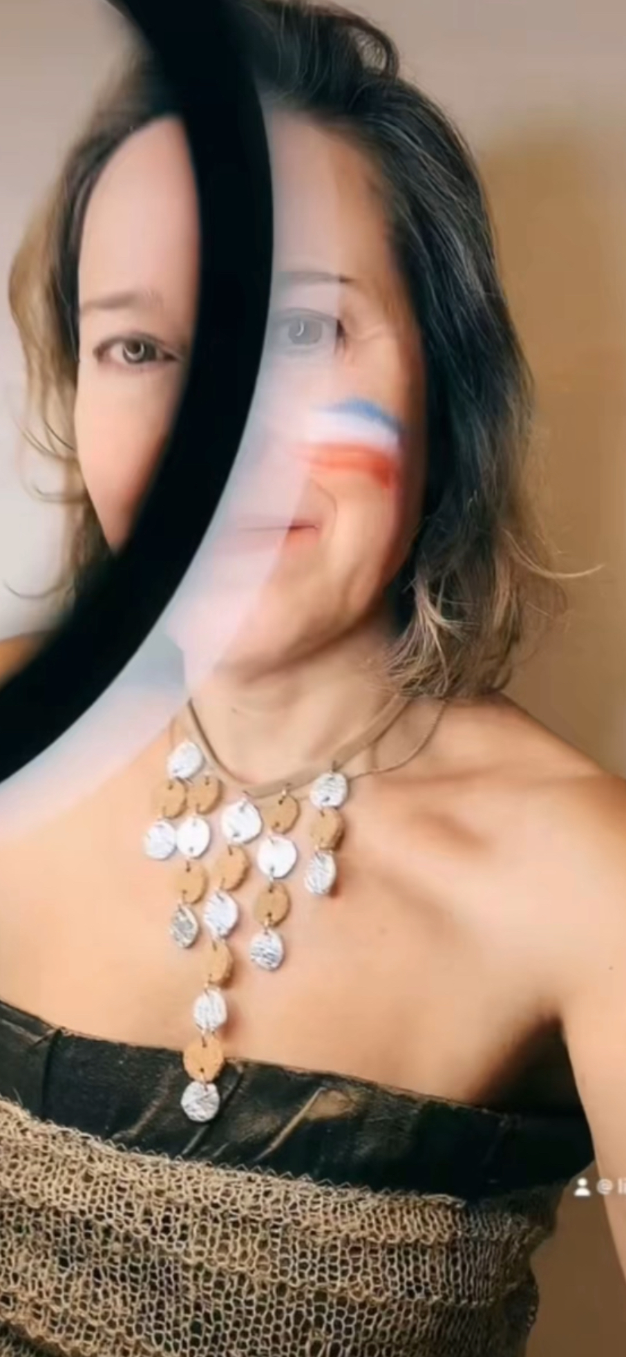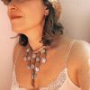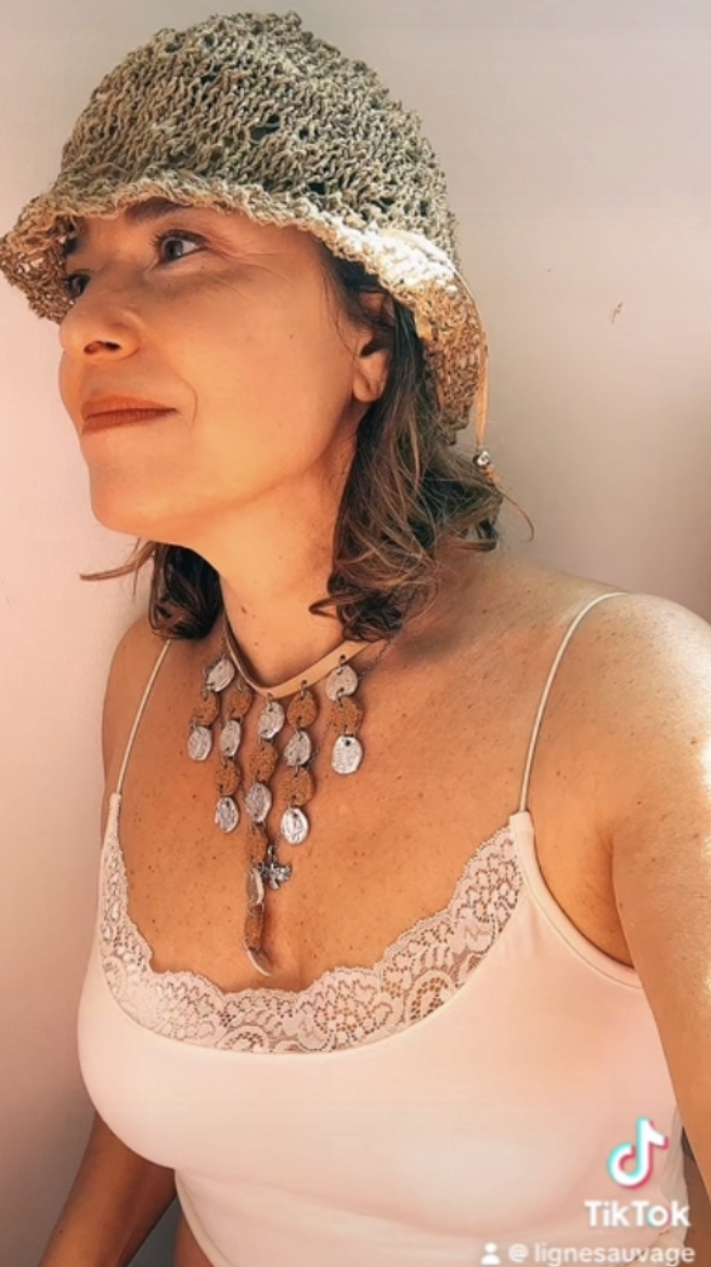 Collier artisanal réalisé avec du cuir végétal d’ananas et du liège.