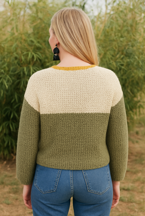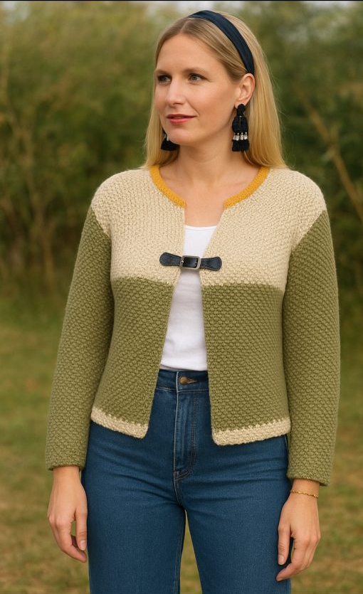 avec ce cardigan tricoté à la main avec des matières naturelles et durables.