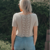 Joli petit haut écru avec motifs à l’avant ou à l’arrière. une maille fantaisie très originale.