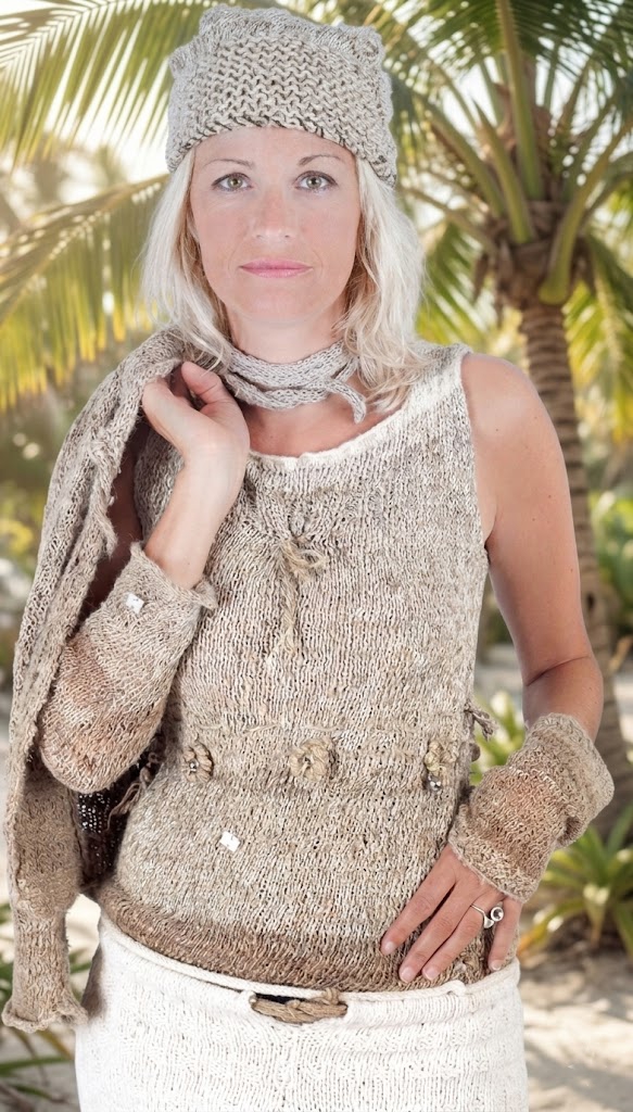 Des accessoires assortis tel que des manchettes, un bardeau, un bonnet renforcent l’identité de la création :brut, élégante, éthique et unique