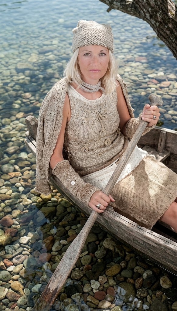Le fil de soie doux et légèrement brillant, contraste subtil avec le fil d ‘ortie brut et authentique. Ce jeu de matière créée une harmonie à la fois visuelle et tactile, conférent au vêtement une allure à la fois naturelle et précieuse.