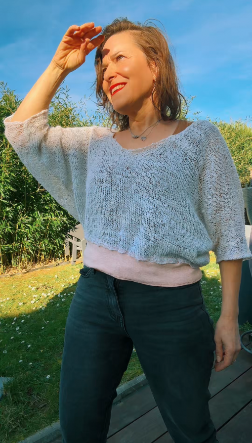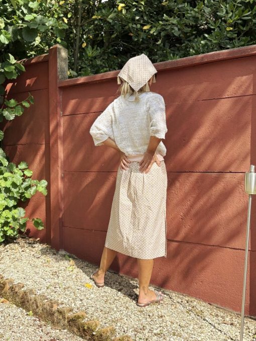 Un joli débardeur bandeau rose, en coton bio, disponible dans la rubrique top, se marie parfaitement avec ce joli pull.